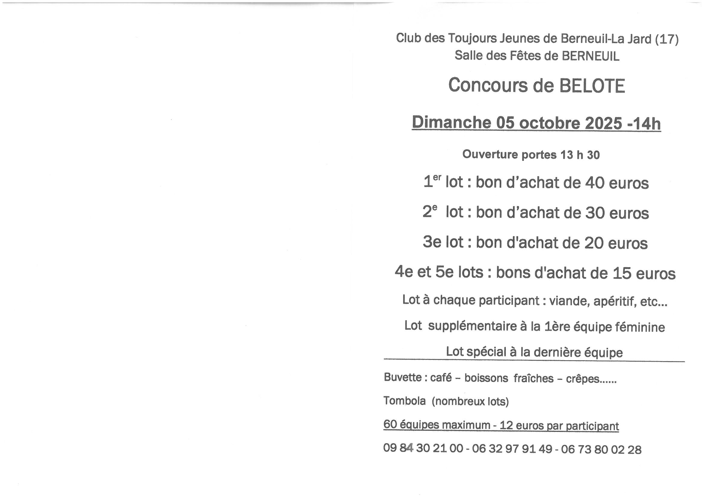 Concours de belote organisée par le « club des Toujours Jeunes »